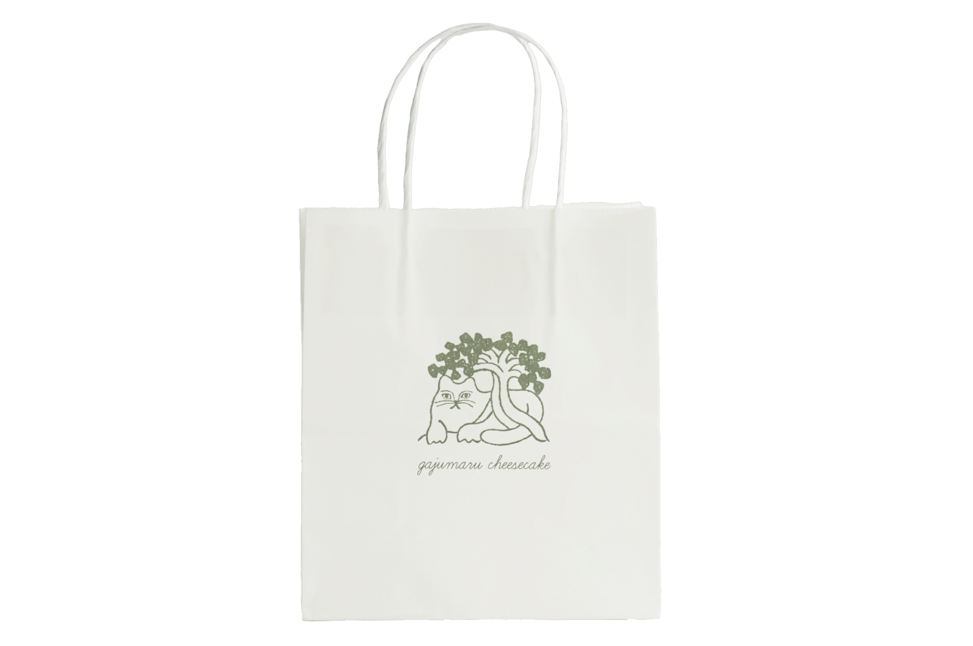 中央にgajumaru cheesecakeのロゴをあしらった、シンプルな紙袋です。